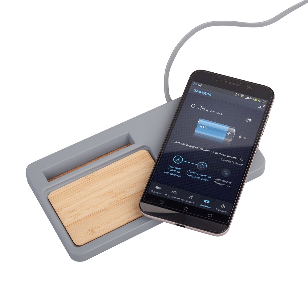 Технические характеристики Настольный органайзер "Stonehenge" с беспроводным зарядным устройством, камень/бамбук, серый/бежевый
