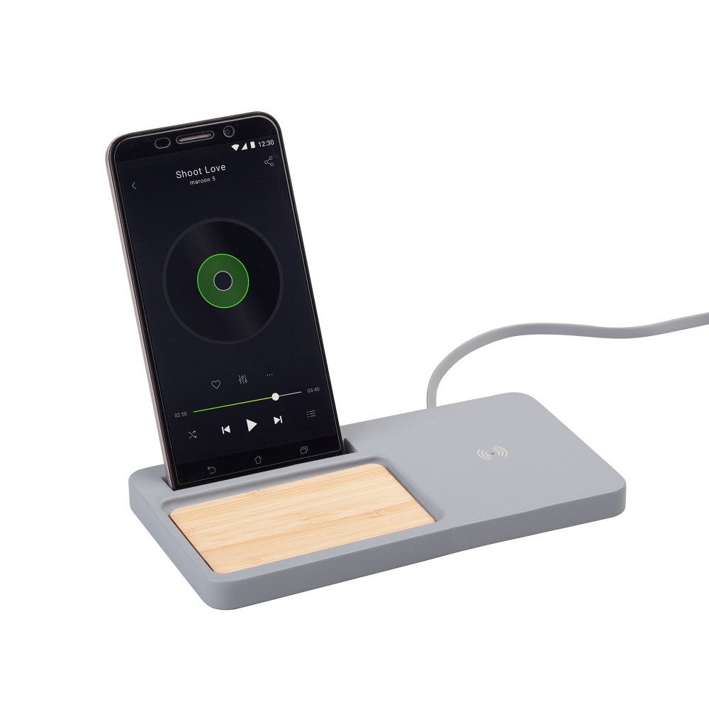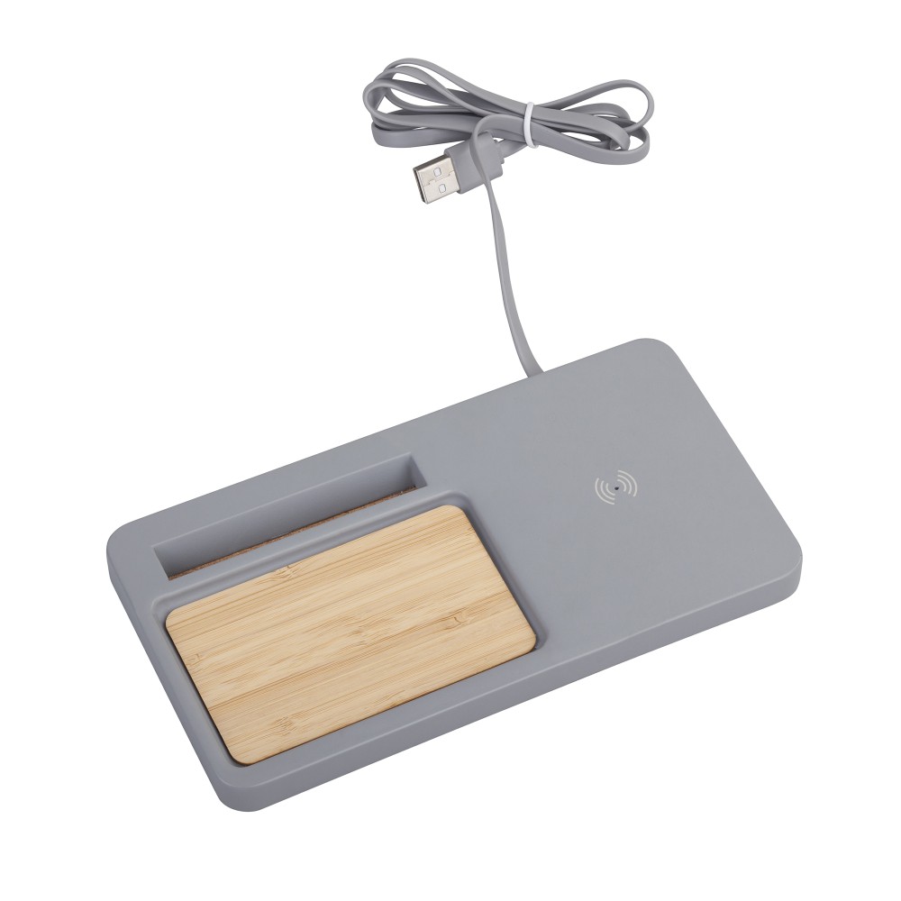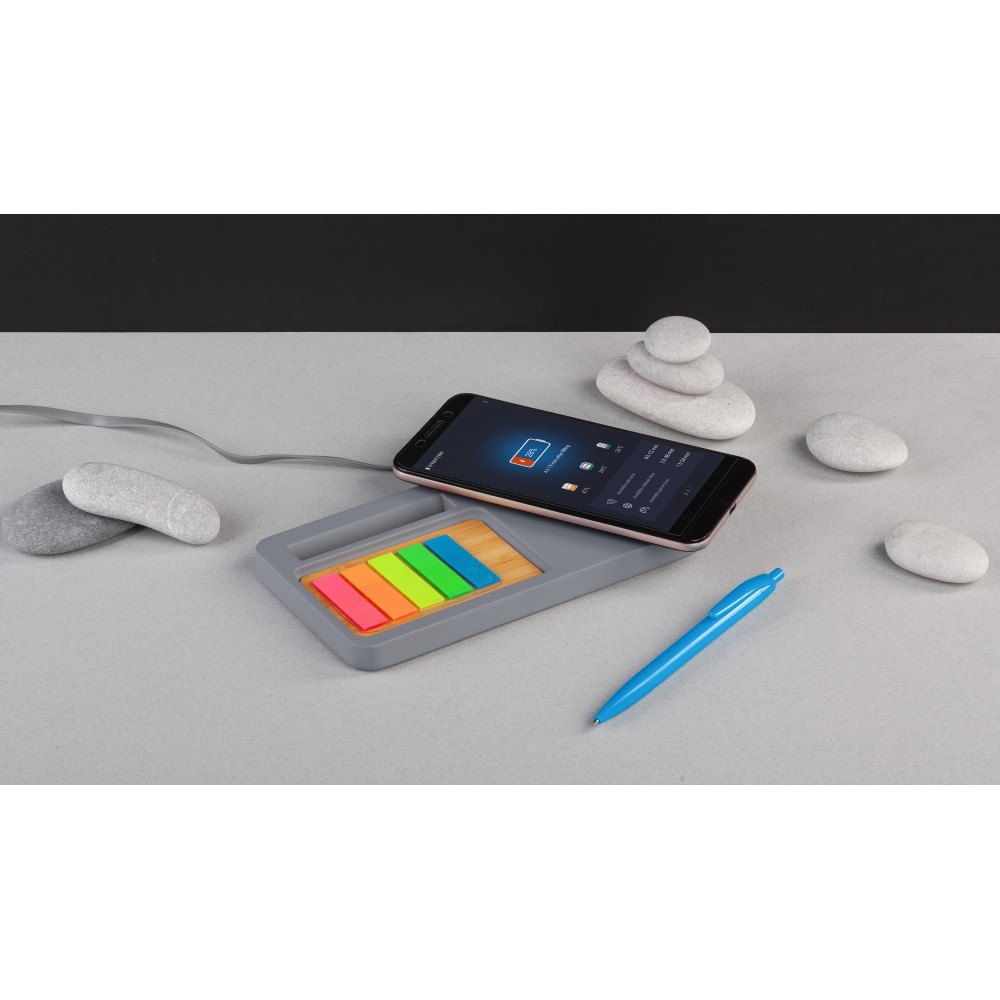 Настольный органайзер "Stonehenge" с беспроводным зарядным устройством, камень/бамбук, серый/бежевый
