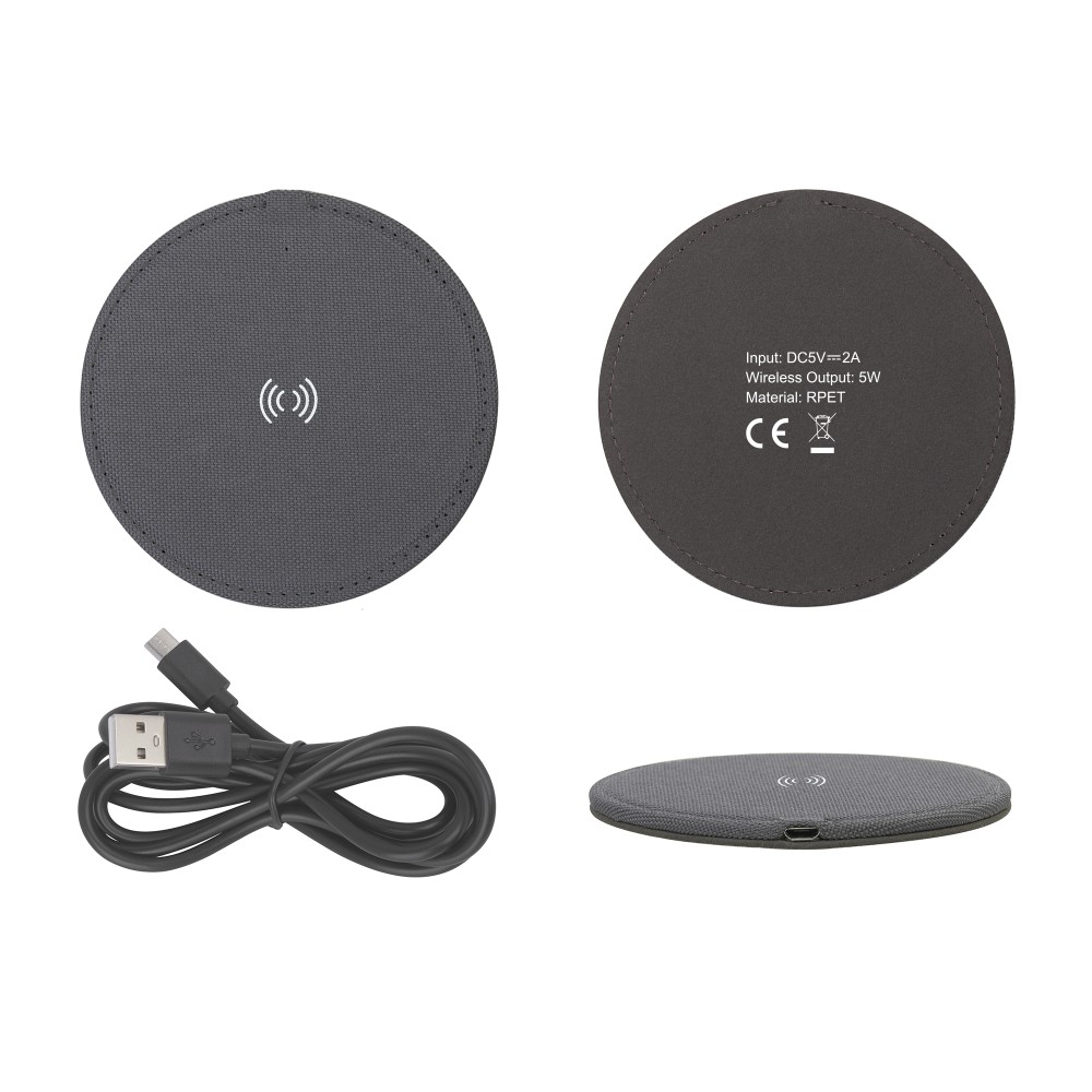 Технические характеристики Настольное беспроводное зарядное устройство "Cool Gray", переработанный пластик (RPET), серый