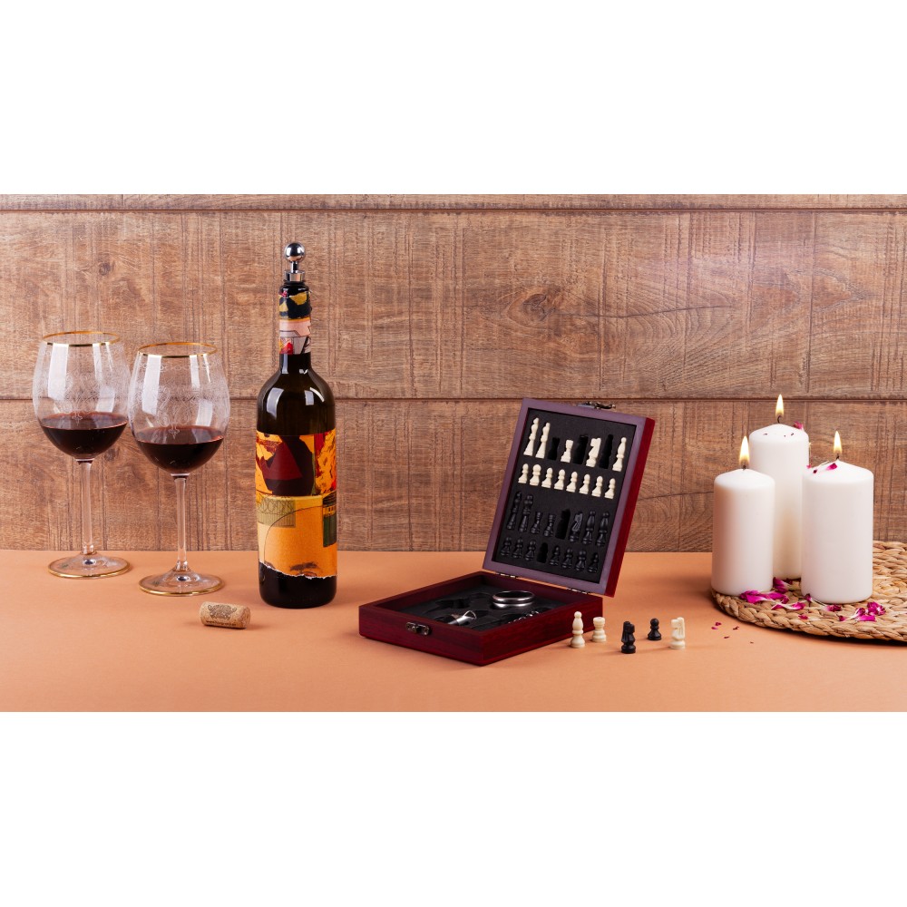 С набором из винных аксессуаров, в котором идут шахматы - вы сможете разнообразить свой досуг, приятно провести время с друзьями.