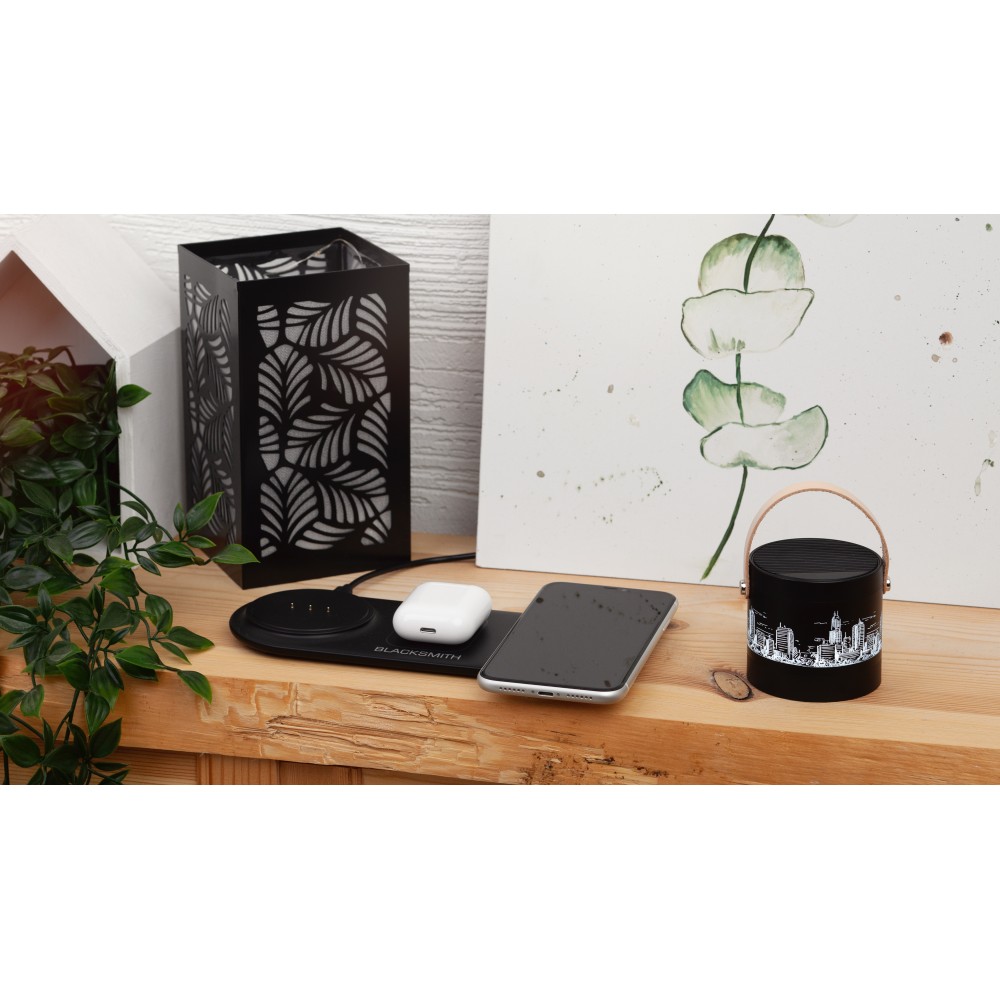 • Настольная беспроводная (15W) зарядная станция "Blacksmith" с bluetooth колонкой с подсветкой логотипа, черный