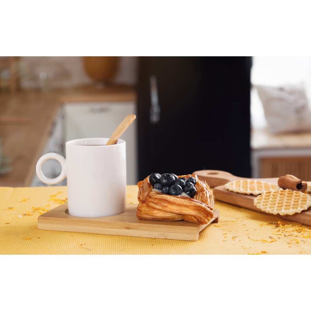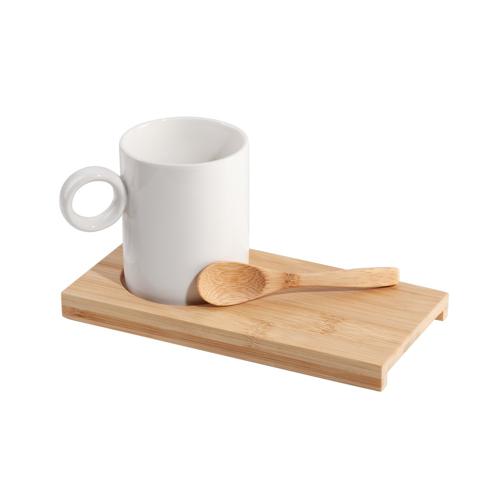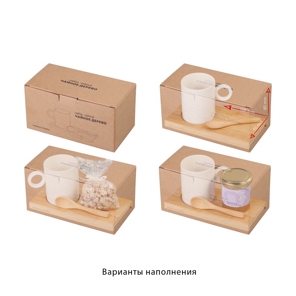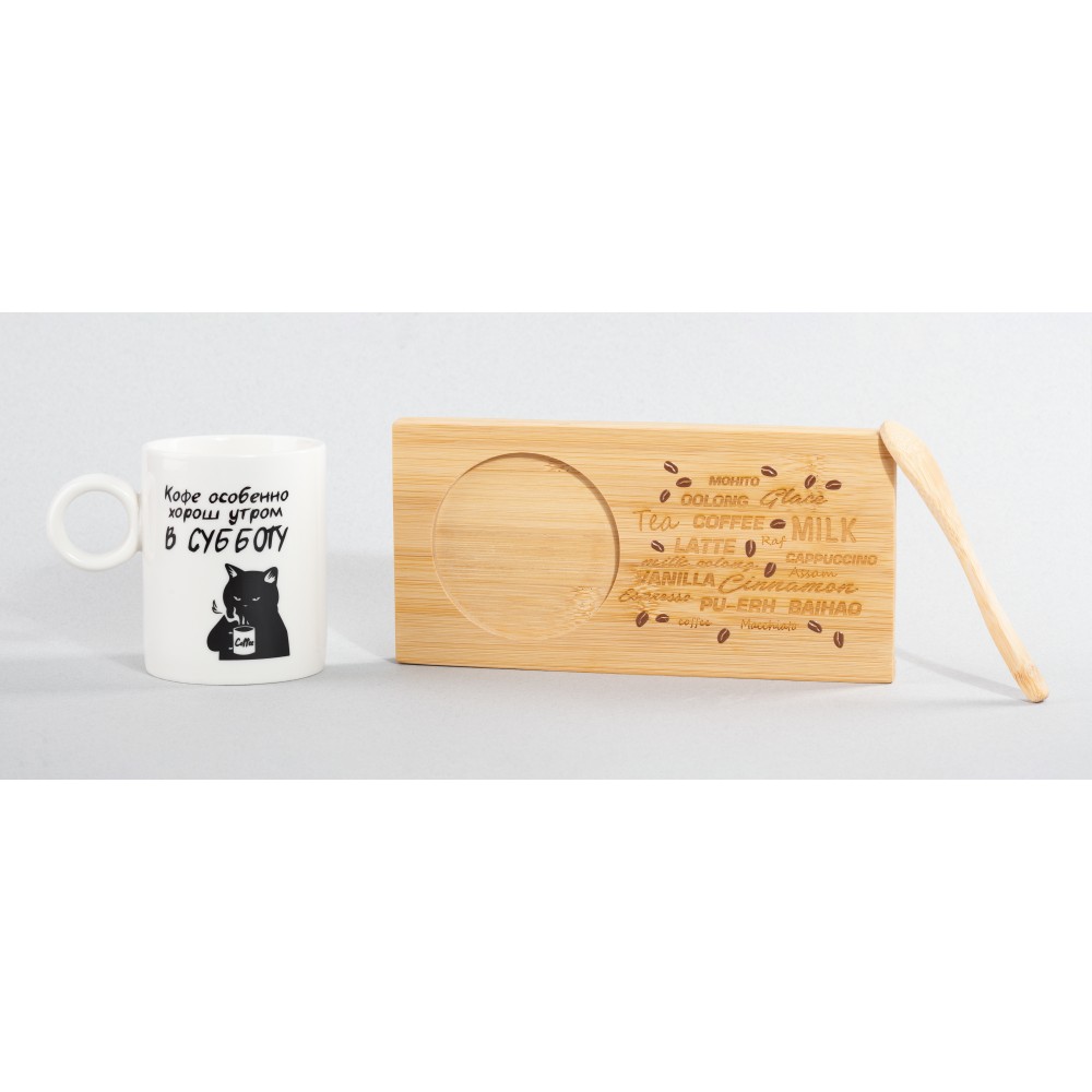 Набор состоит из фарфоровой кружки объёмом 230 мл, подставки и ложки из натурального бамбука. Комплект можно использовать в тематических сетах, эко-подборках и, конечно, как самостоятельный подарок.Поставляется в лаконичной крафт-коробке.