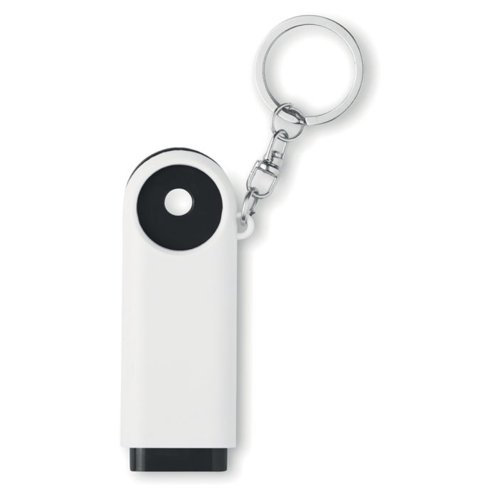 Брелок-фонарик с пластиковой монетой для получения тележки в магазине. 1 батарейка включена в комплект.
