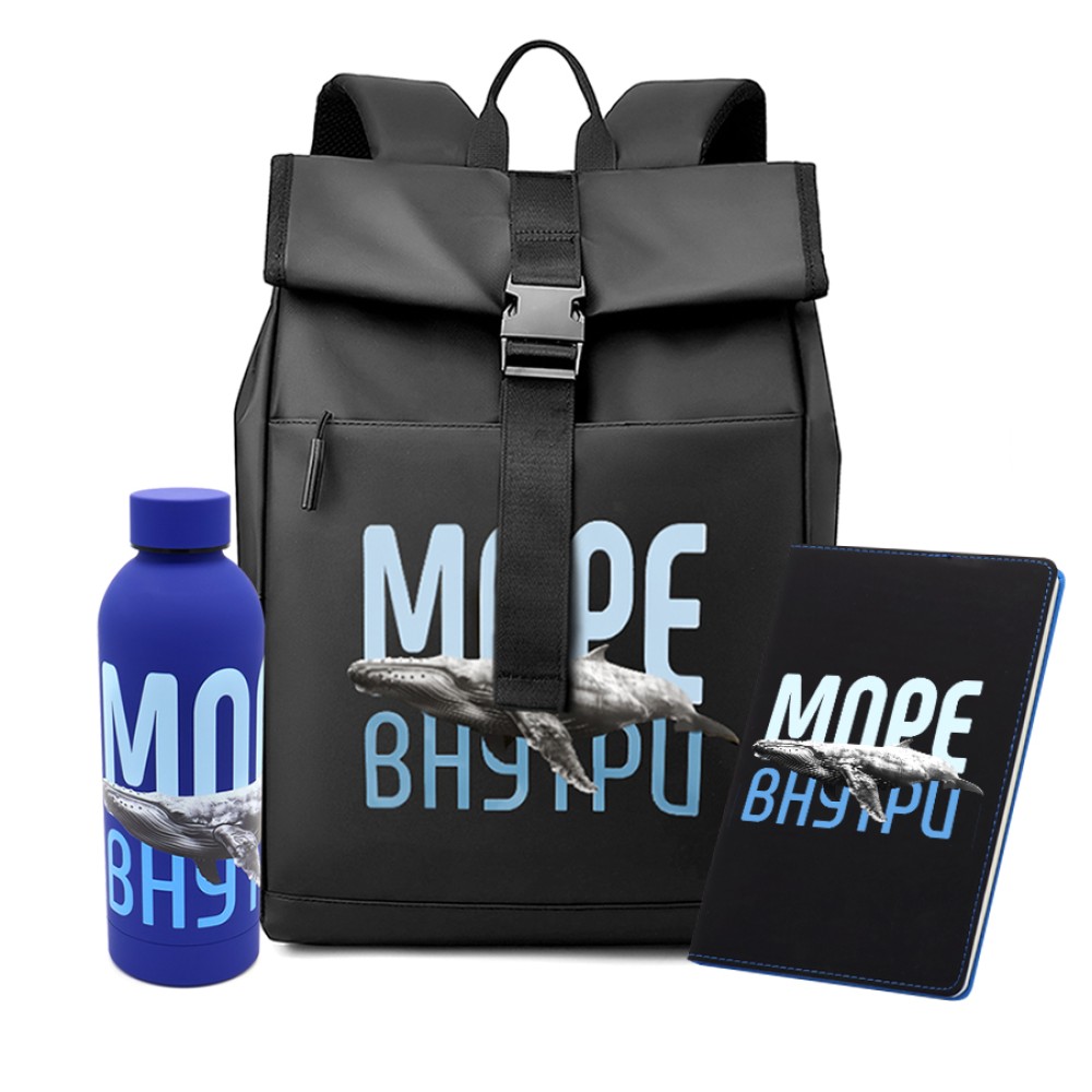 "МОРЕ ВНУТРИ" — набор, созданный, чтобы подарить вам ощущение бескрайнего побережья и лёгкий шум прибоя, где бы вы ни находились. Каждая деталь подобрана так, чтобы пробуждать свежесть, умиротворение и вдохновение, словно вы у моря — даже если вокруг суета города. Состав набора: 1. Рюкзак Alvort чёрный (артикул 4037.02) - 1 шт. 2. Термобутылка Perfecto софт-тач синяя (артикул 5066.03) - 1 шт. 3. Ежедневник A5 недатированный Simflex в мягком переплёте чёрный (артикул 51020.02) - 1 шт.