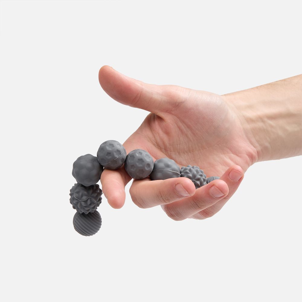 Шарики разной фактуры можно легко использовать как массажные.В комплекте: 8 шариков, мешочек, подарочная коробка на магнитном клипе.