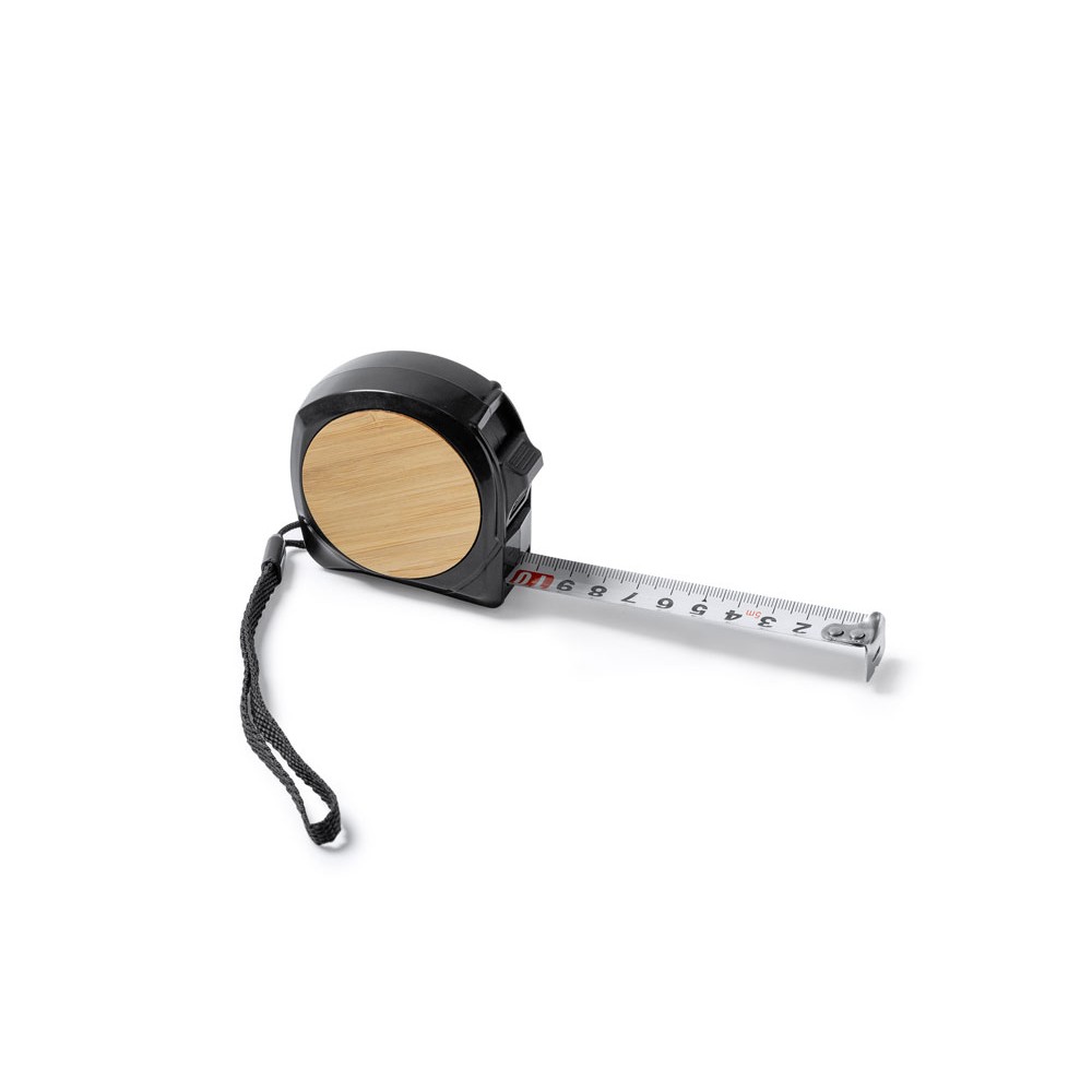 Рулетка на 5 метров. Металлический зажим, ремешок для транспортировки и бамбуковые детали.