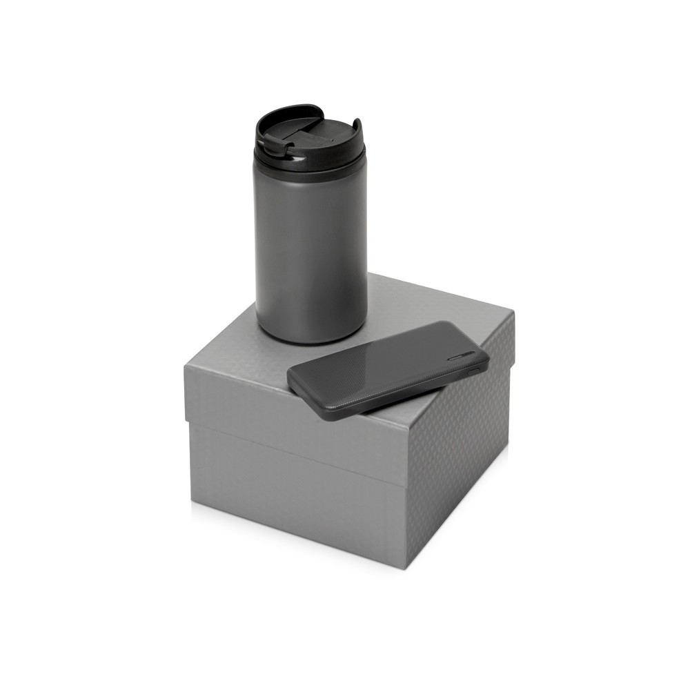 Подарочный набор Full Jar с внешним аккумулятором и термокружкой, серый