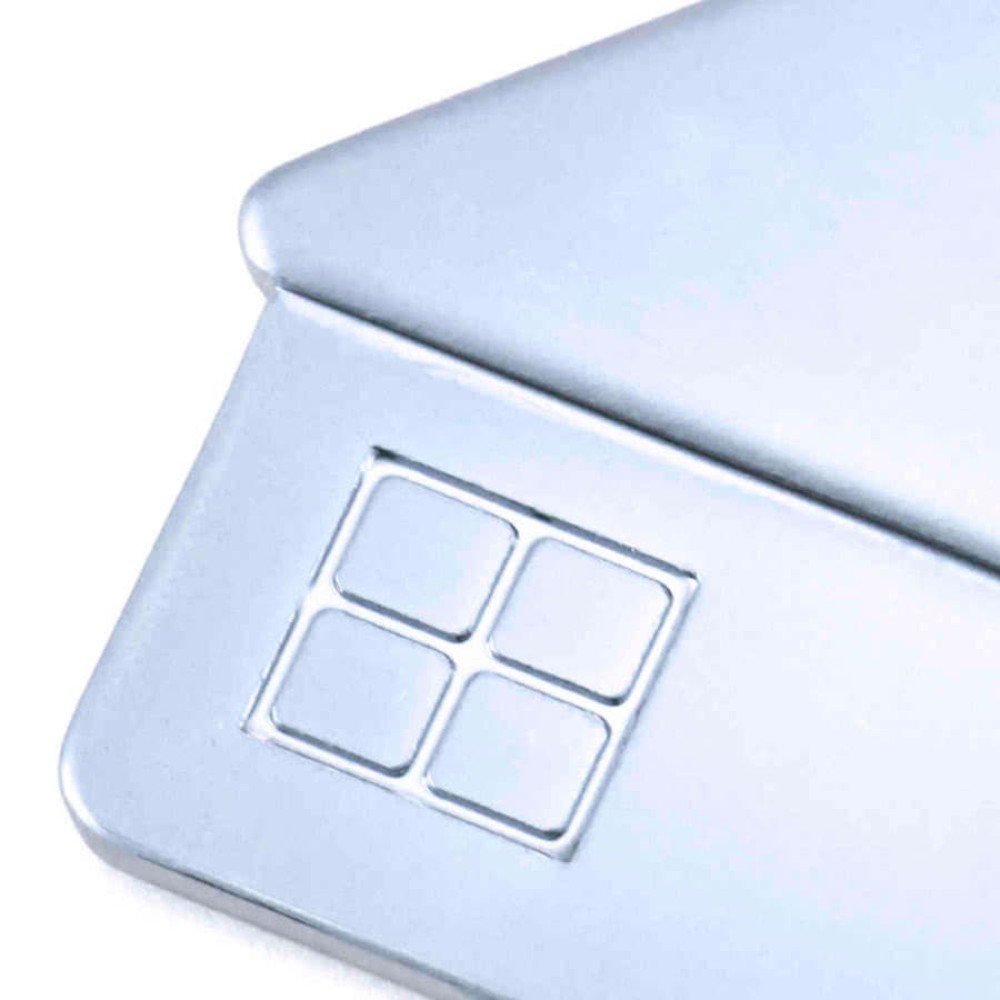 Металлический брелок с интересным дизайном дома и элегантной матовой отделкой.