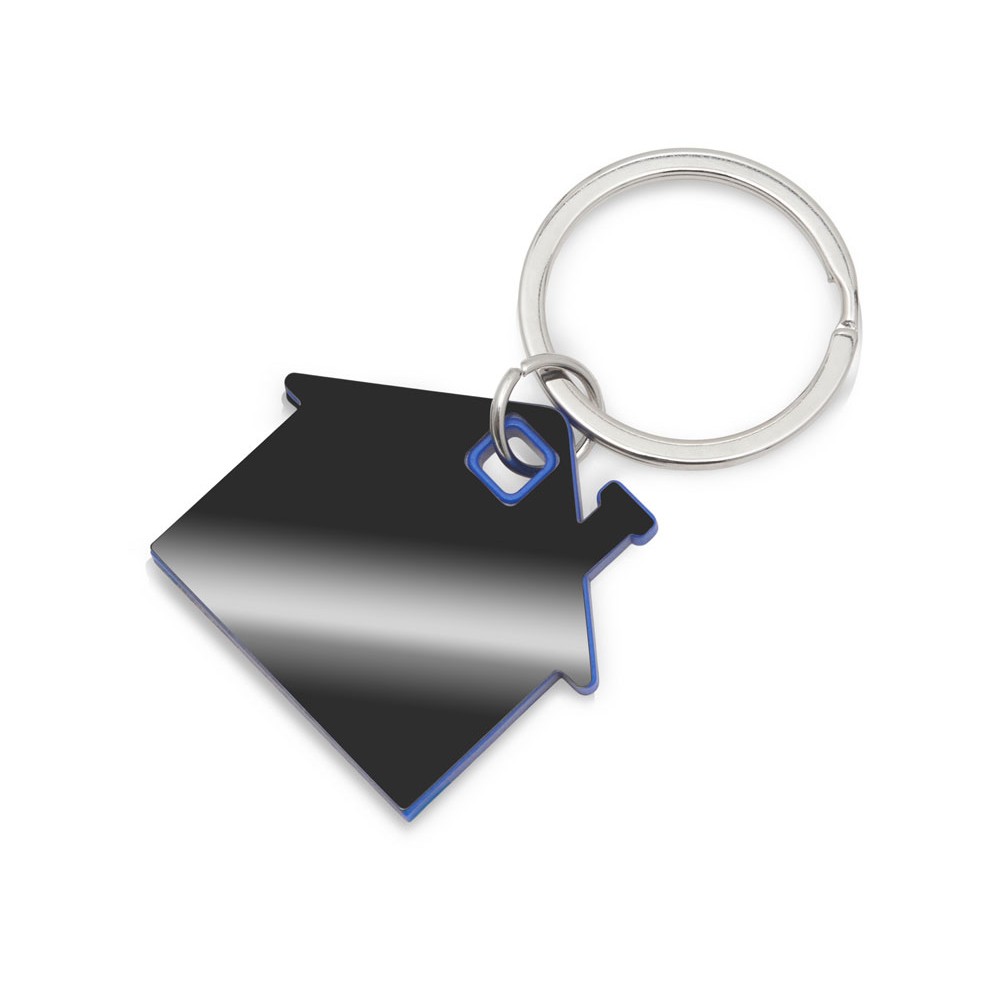 Металлический брелок с пластиковой цветной вставкой SteelPop House, серебристый с синим