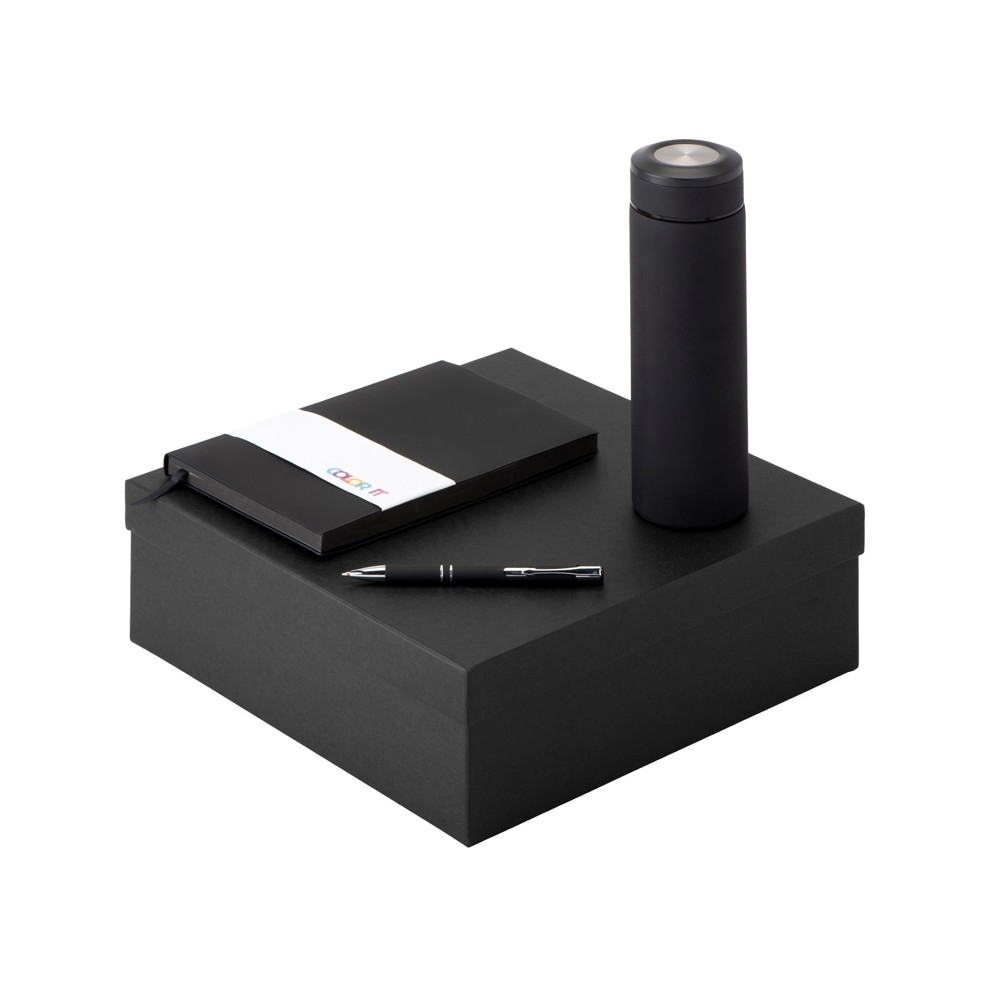 • Подарочный набор с блокнотом С1, металлической ручкой и термосом, черный