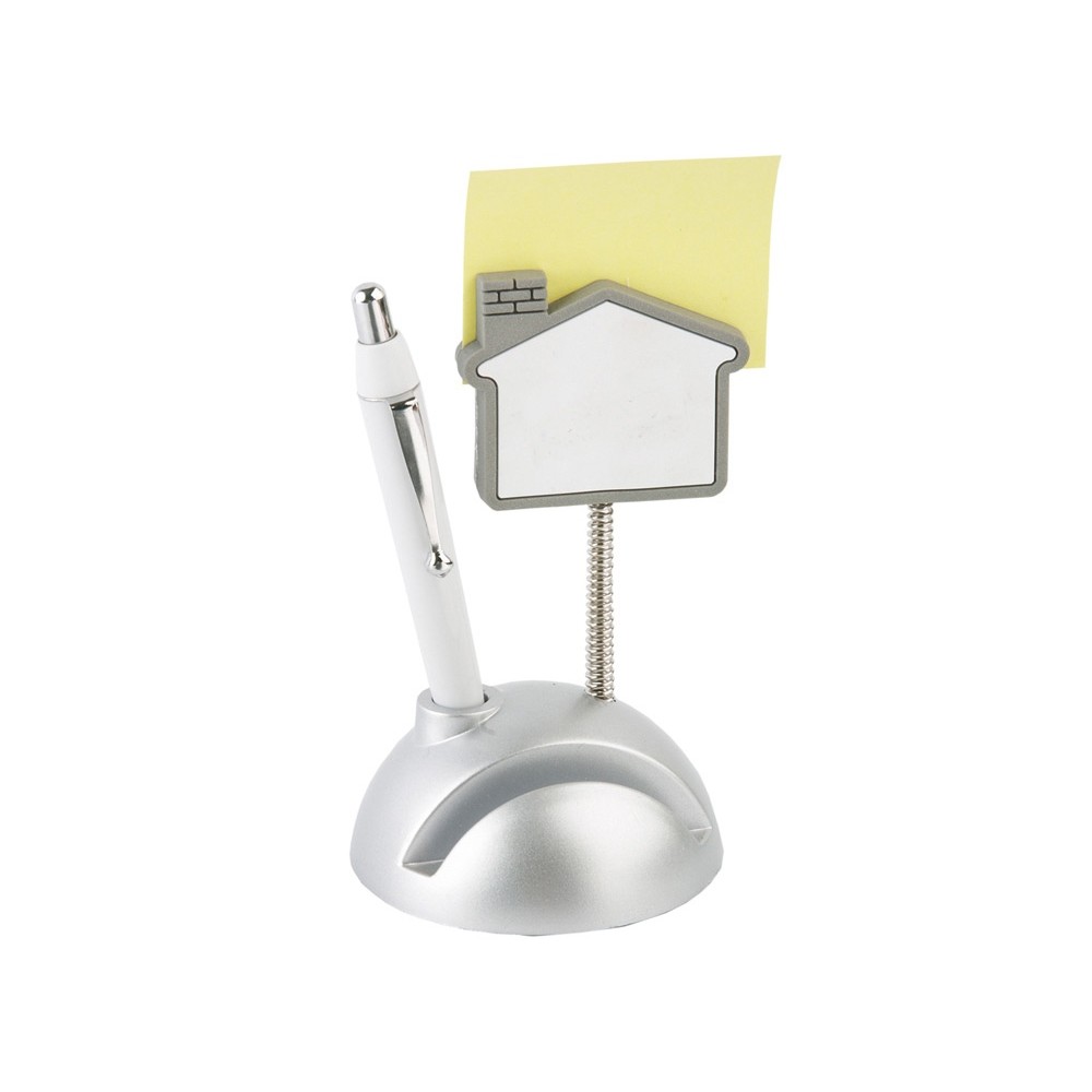 Подставка для визиток и ручки с держателем для бумаги Домик, серебристый/белый (Р)