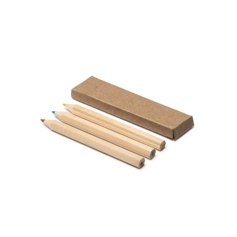 Набор из 3 цветных деревянных карандашей, упакованных в коробку из переработанного картона.