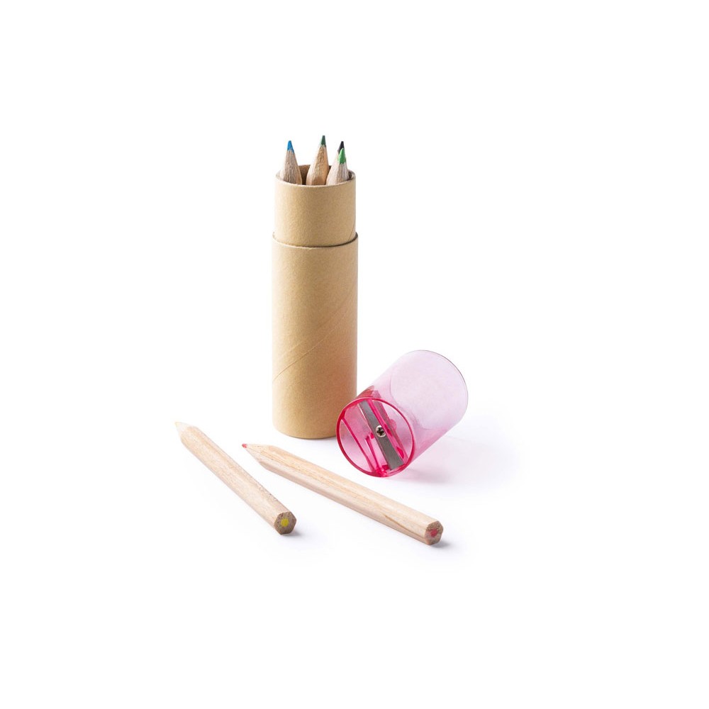 Набор из 6 деревянных карандашей в футляре из переработанного картона с полупрозрачной цветной крышкой. В крышку встроена точилка для карандашей. Доступен в различных цветах.