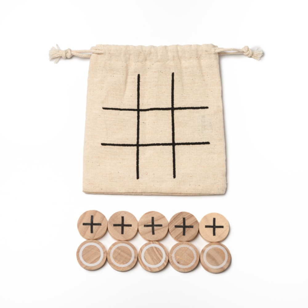 Деревянная игра "Крестики-нолики". В комплект входят 10 деталей, упакованных в мешочек из натурального хлопка.