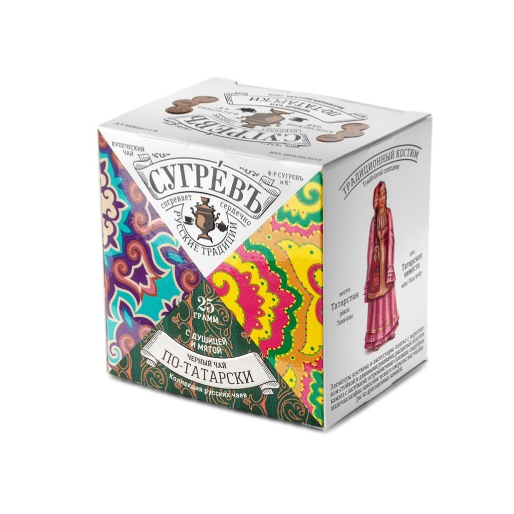 Чай ПО-ТАТАРСКИ сделан на основе купажа отборного цейлонского чая Pekoe c добавлением натуральных популярных трав Татарстана. Брусничный лист придаёт напитку лёгкую терпкость, а мята с душицей добавляют аромат и свежесть. При желании в этот чай можно добавить молоко, чтобы приблизиться к традициям татарского чаепития.