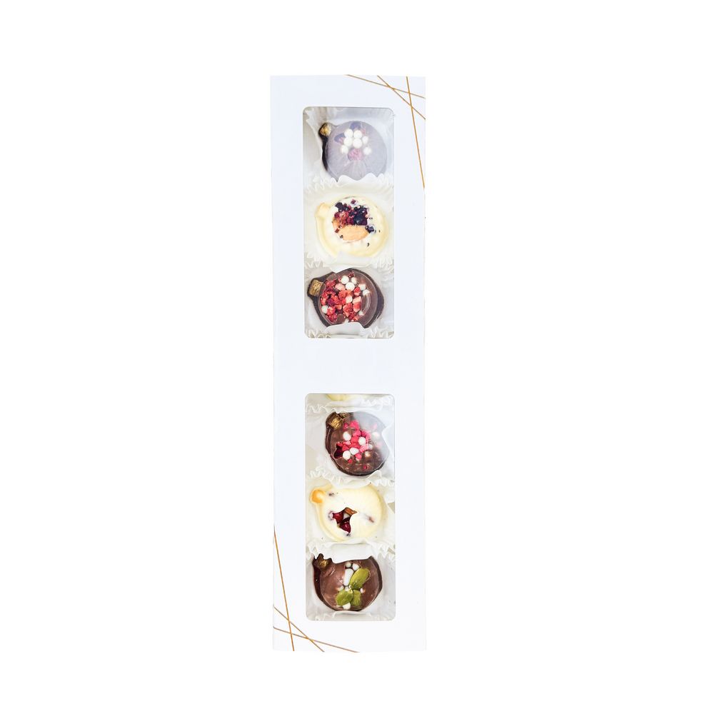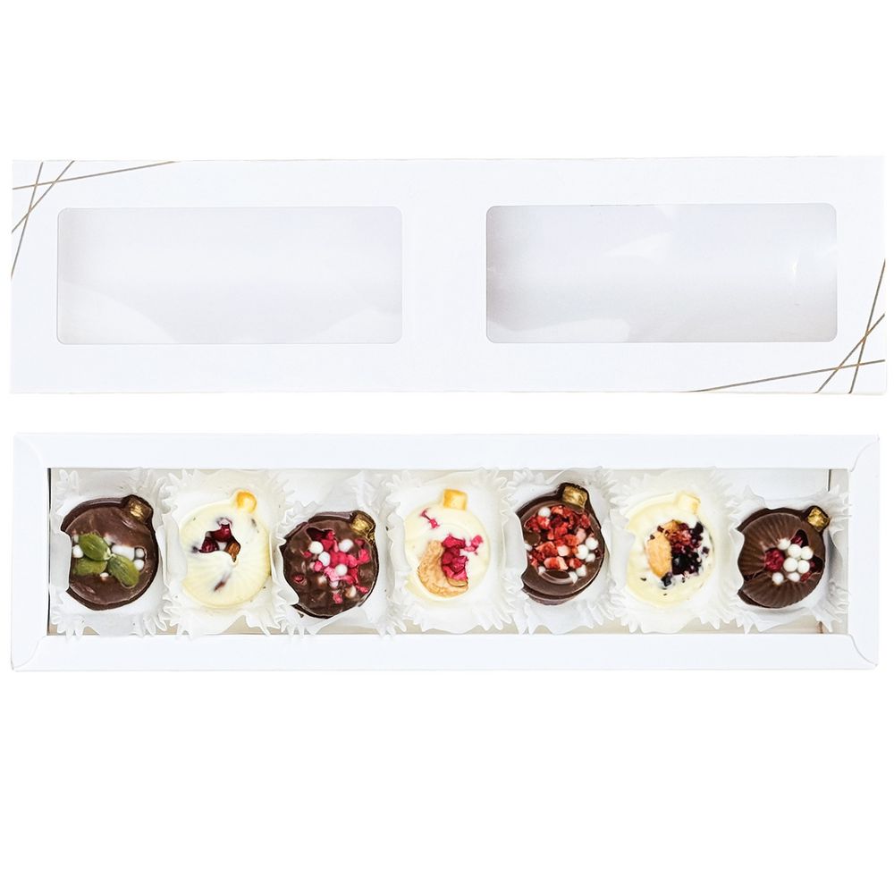 Набор включает шарики из молочного и белого шоколада с добавлением сублимированной малины, клубники и черной смородины, кешью, миндаля, тыквенных семечек и воздушного риса. Прекрасное сочетание для праздничного настроения!