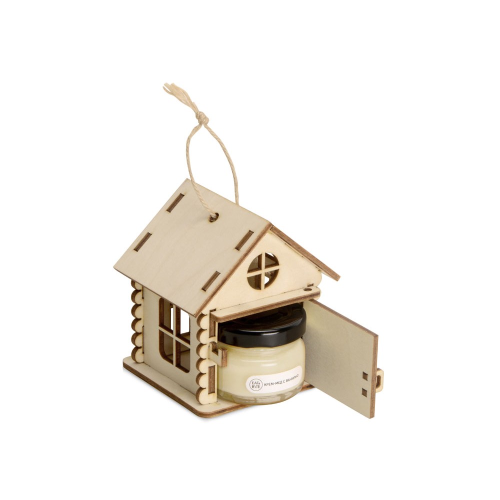 Вес140 Комплектностьподарочная упаковка Домик 7 х 7 х 8,6 см, крем-мёд с ванилью 35 г, d4,4 х 3,5 см Материал товарашлифованная березовая фанера толщиной 3 мм