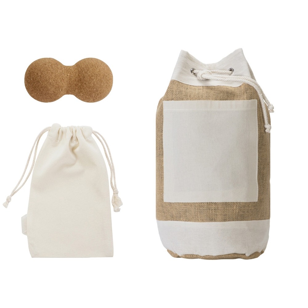 | Материал товара | массажный мяч - пробковый материал, неокрашенный хлопок, рюкзак - 250 г/м2 натуральный джут, 140 г/м2 натуральный хлопок, карман -180 г/м2 натуральный хлопок |