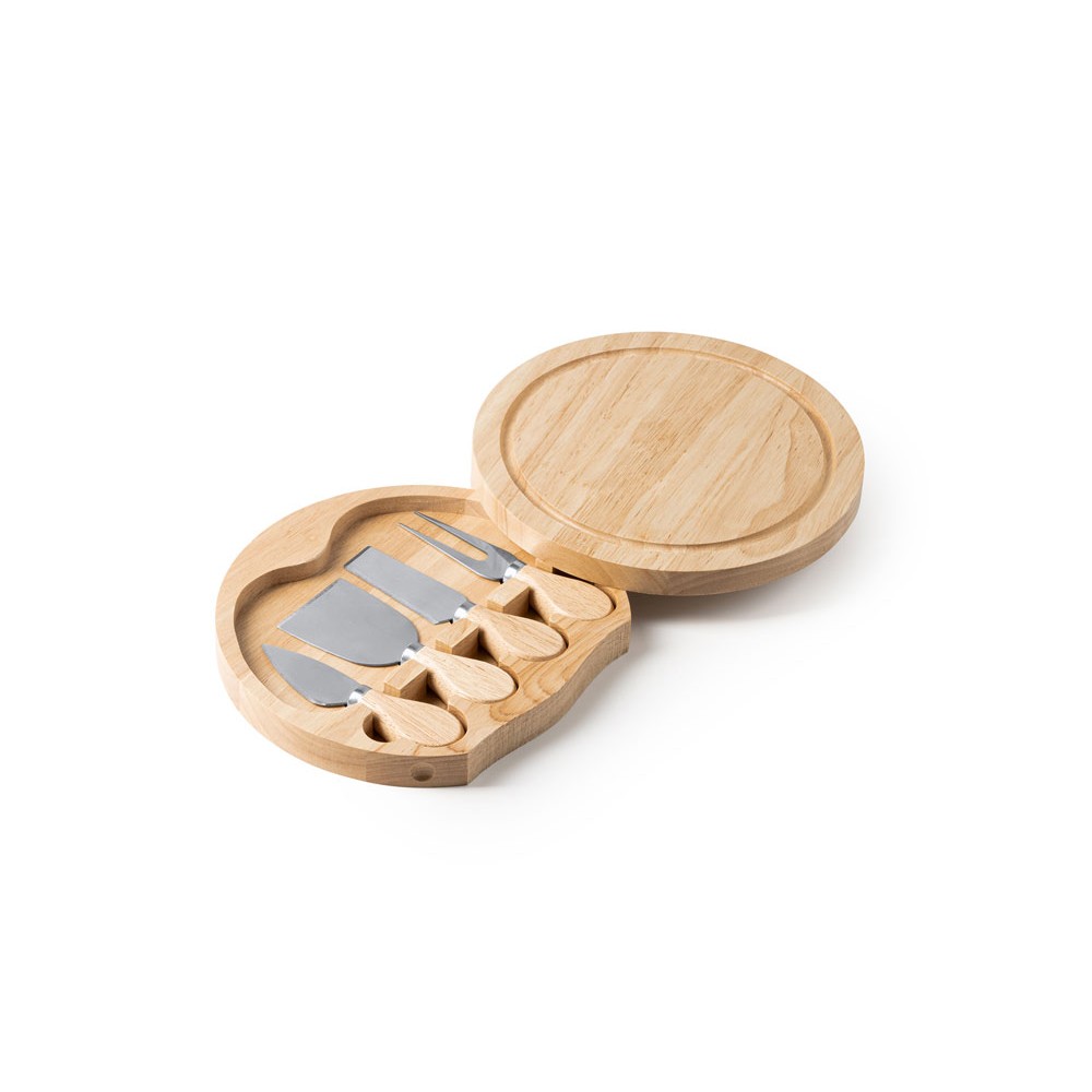 Набор для сыра с 4 столовыми приборами из нержавеющей стали и деревянными ручками. Представлен в практичном деревянном футляре с разделочной доской в верхней части.