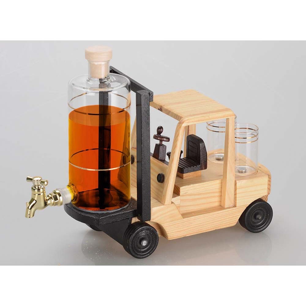 Креативный подарок для руководителей транспортных, производственных и торговых компаний. Графин для виски с краном и подставкой в форме погрузчика оснащен двумя стопками. Набор позволит разрядить обстановку и отметить достижения в узком кругу.
