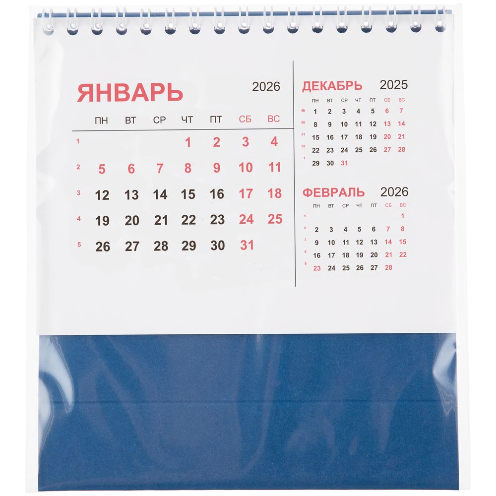 Компактный настольный календарь с датировкой на 2026 год.