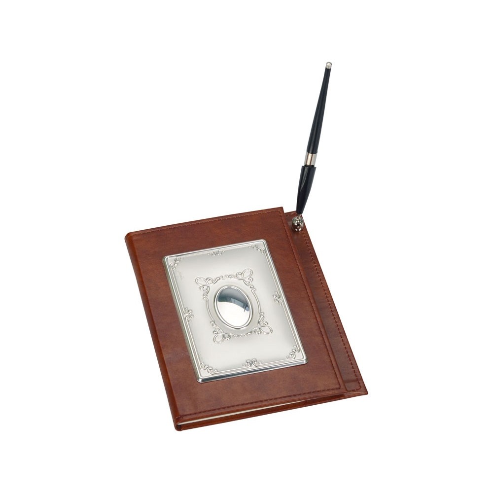 Оригинальный настольный прибор состоит из записной книжки и ручки. Обложка блокнота оснащена держателем для ручки и задекорирована изысканным украшением. Прибор станет настоящей настольной книгой руководителя.