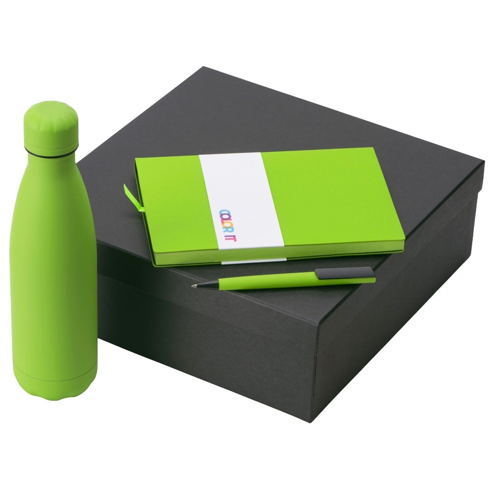 Подарочный набор c блокнотом C1, ручкой и термобутылкой, зеленое яблоко