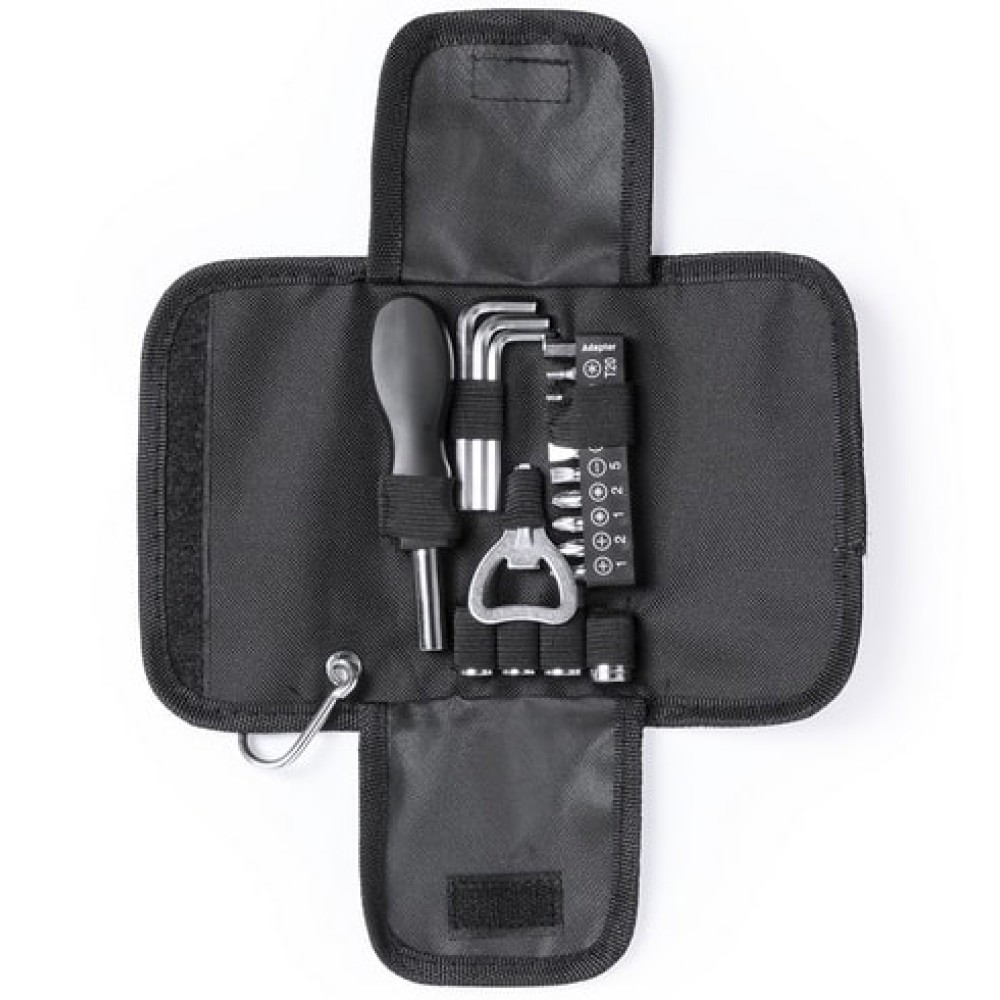 Набор инструментов из 19 аксессуаров в чехле из полиэстера с застежкой-молнией.