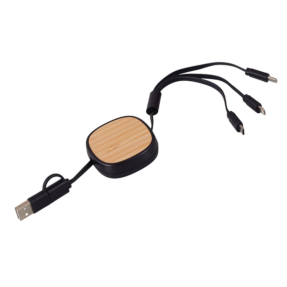 Универсальный кабель с ретрактором 3-в-1 Retrax — это стильное и практичное решение для зарядки и передачи данных на ходу. Компактный корпус из экологичного бамбукового покрытия сочетается с удобной системой автоматического складывания, что делает его идеальным спутником в путешествиях, на работе и в повседневной жизни. Кабель оснащён тремя разъёмами: USB-A, Micro-USB и Lightning, обеспечивая совместимость с широким спектром устройств — от смартфонов до планшетов и других гаджетов. Благодаря прочной конструкции и элегантному дизайну, Retrax станет незаменимым аксессуаром для тех, кто ценит функциональность и стиль. Поставляется в фирменной коробке bamboo collection. • 3 в 1: один кабель — три разъёма (USB-A, Micro-USB, Lightning) для универсальной зарядки. • Входной разъем 2 в 1 – USB-C и USB-A • Автоматический ретрактор: кабель легко вытягивается и возвращается в корпус — всегда под рукой, но не мешает. • Компактный и стильный: эргономичный корпус с натуральным бамбуковым покрытием — сочетание технологий и природы. • Удобно для путешествий: миниатюрный размер позволяет легко помещать кабель в карман, сумку или рюкзак.