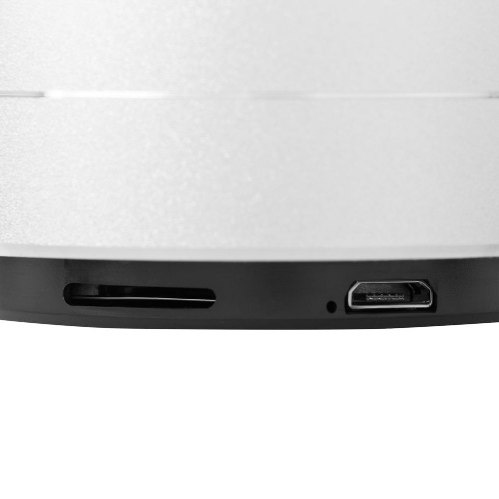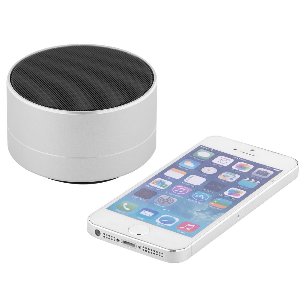 Колонка в металлическом корпусе выглядит стильно и солидно. Использовать ее можно даже на открытом воздухе — у нее достаточно мощный звук. Можно использовать для переговоров по громкой связи.