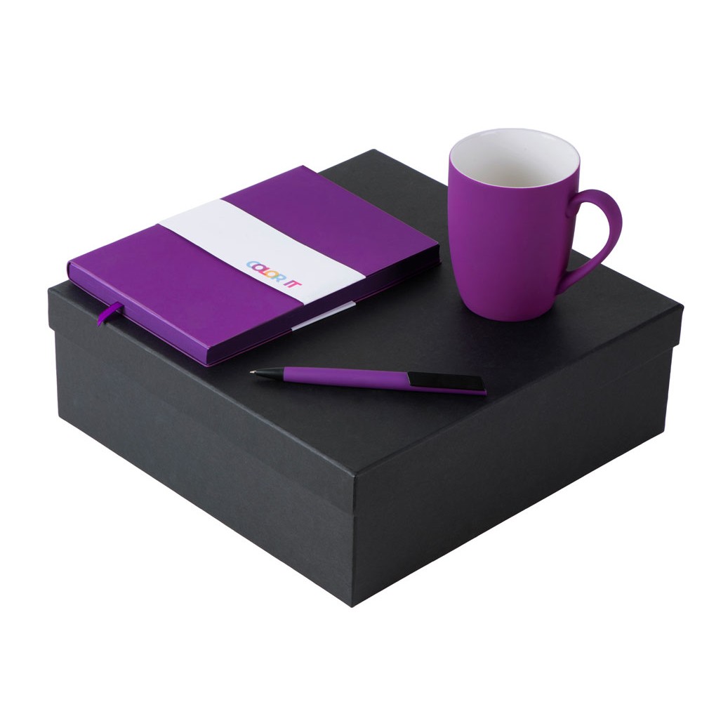 Подарочный набор с блокнотом С1, пластиковой ручкой и кружкой, фиолетовый