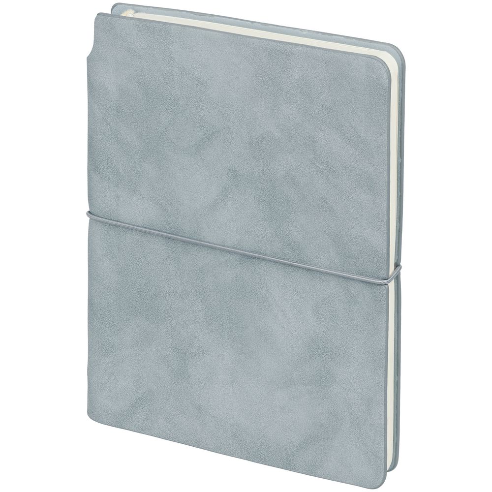 Ежедневник из искусственного материала, напоминающего замшу, и ручка с покрытием софт-тач, которая удобно прячется за обложку ежедневника.