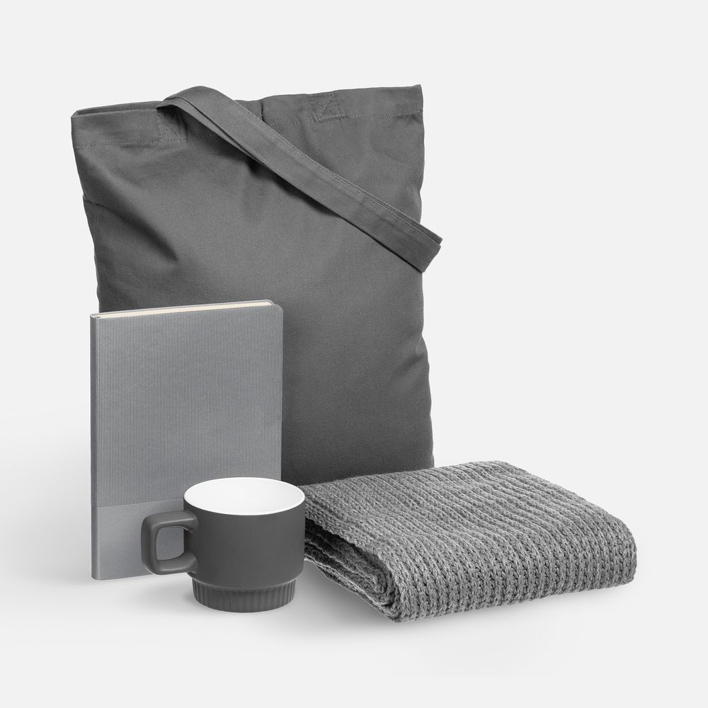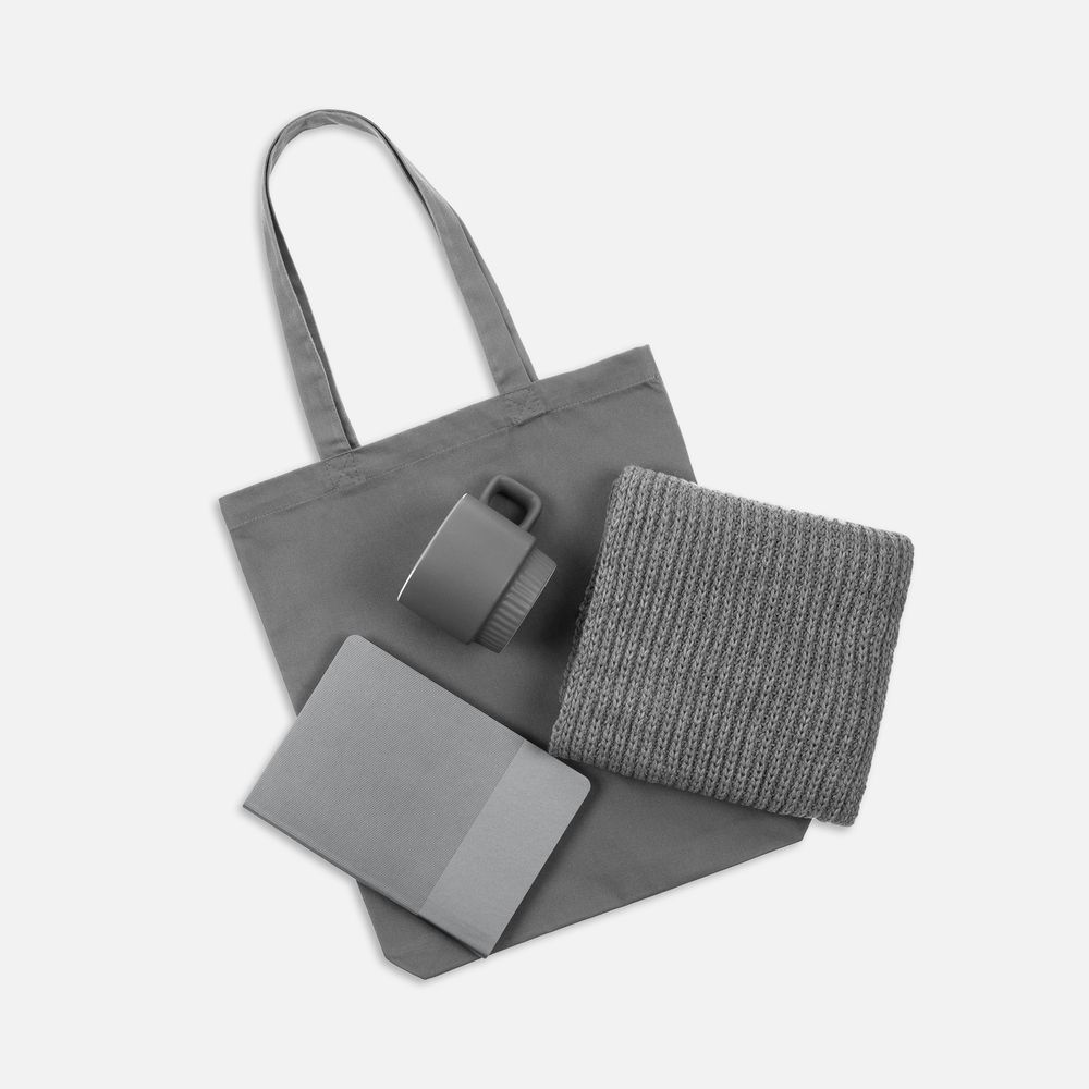 Материал сумка - хлопок 100%; шарф - акрил 100%; ежедневник - искусственная кожа; кружка - каменная керамика