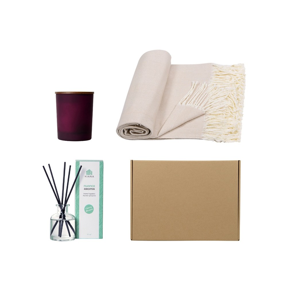 • Подарочный набор с пледом, свечой и диффузором, бежевый