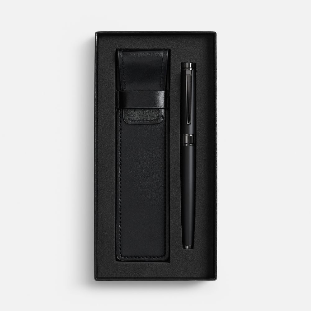 Роллер в матовом корпусе с глянцевыми деталями в оттенке gun metal выглядит одновременно сдержанно и презентабельно, а чехол из искусственной кожи не только защищает ручку от пыли и царапин, но и дополнительно подчеркивает статус владельца.