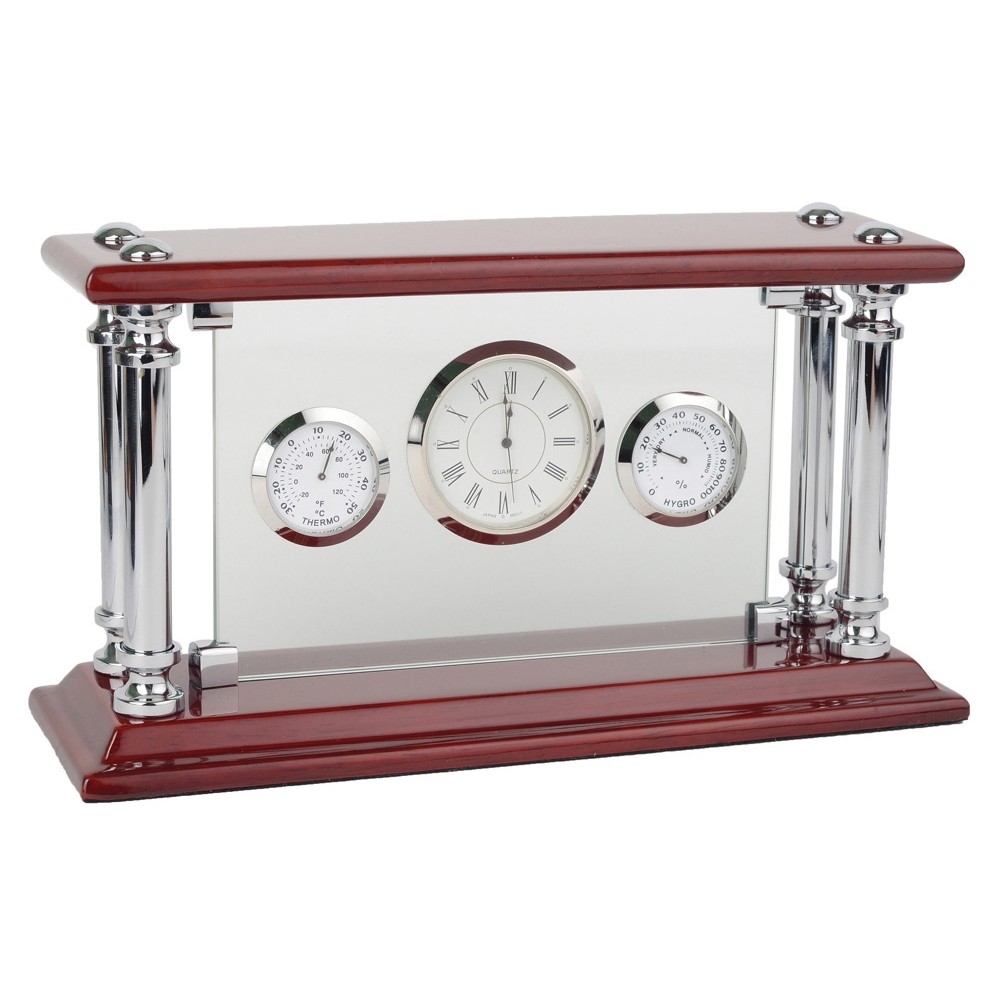 Отличный статусный подарок для руководителя или партнера компании – погодная станция, совмещающая в себе часы, гигрометр и термометр. Благородное сочетание дерева, металла и стекла не оставит равнодушным даже очень избирательного человека.
