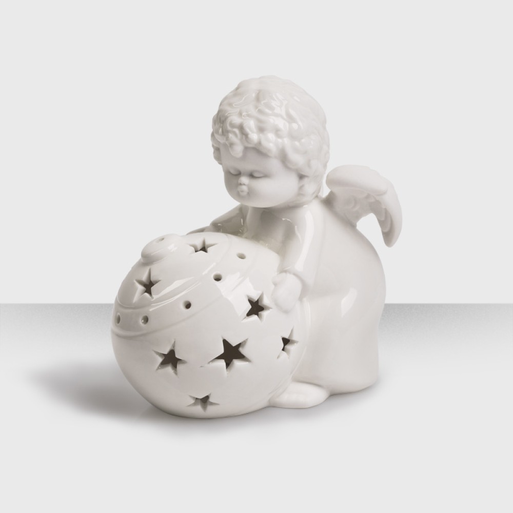 Подсвечник "Ангел с елочным шаром", белый