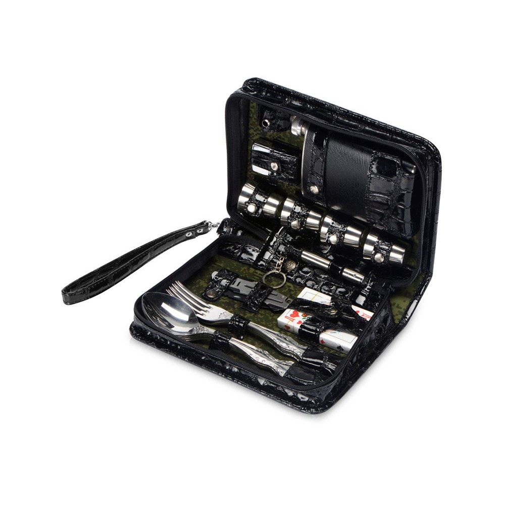 Оригинальный дорожный набор на 4 персоны в барсетке с удобным ремешком для переноски.