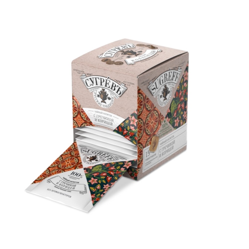 Чайный напиток с гречихой и корицей в индивидуальном саше конверте, 15 пакетиков