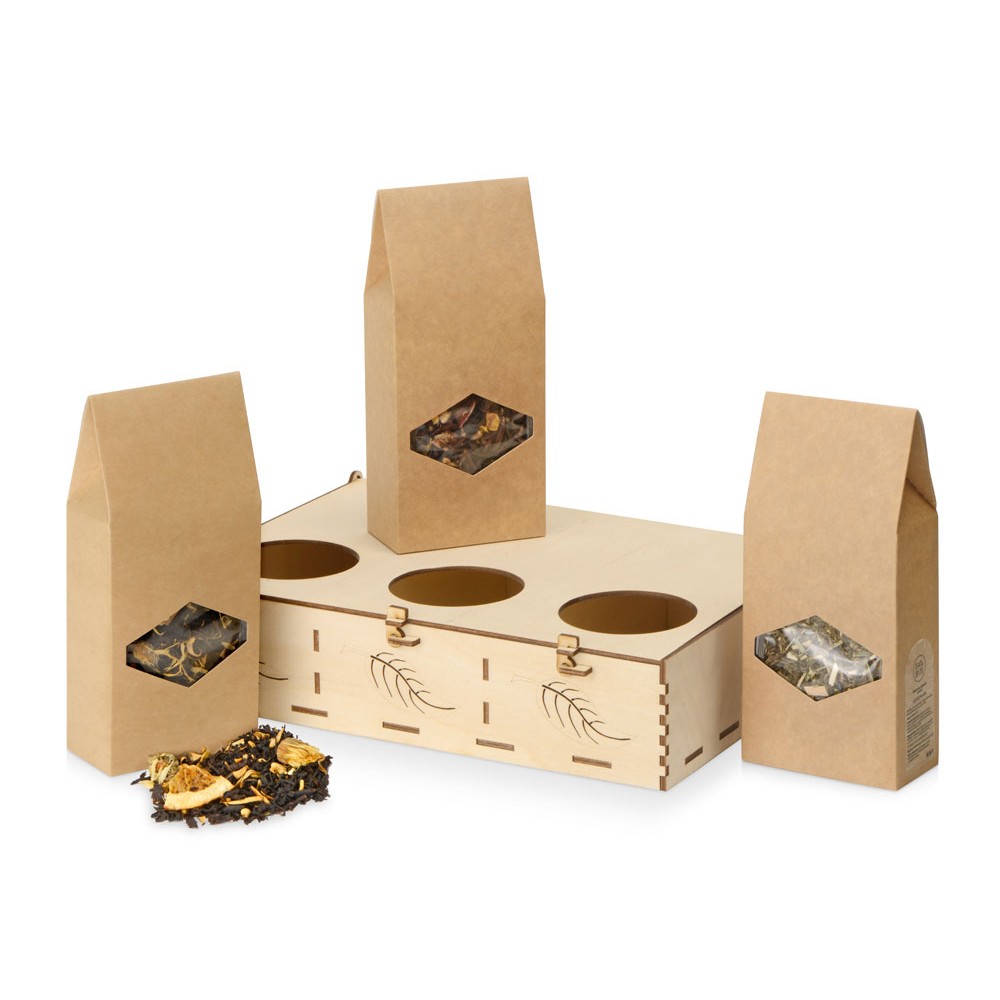 | Вес767 | Комплектностьчай Глинтвейн фруктовый 90 г, чай Апельсин с имбирём чёрный 70 г, чай Вечерний травяной 40 г, подарочная коробка Лист | Материал товараберезовая фанера толщина 3мм |