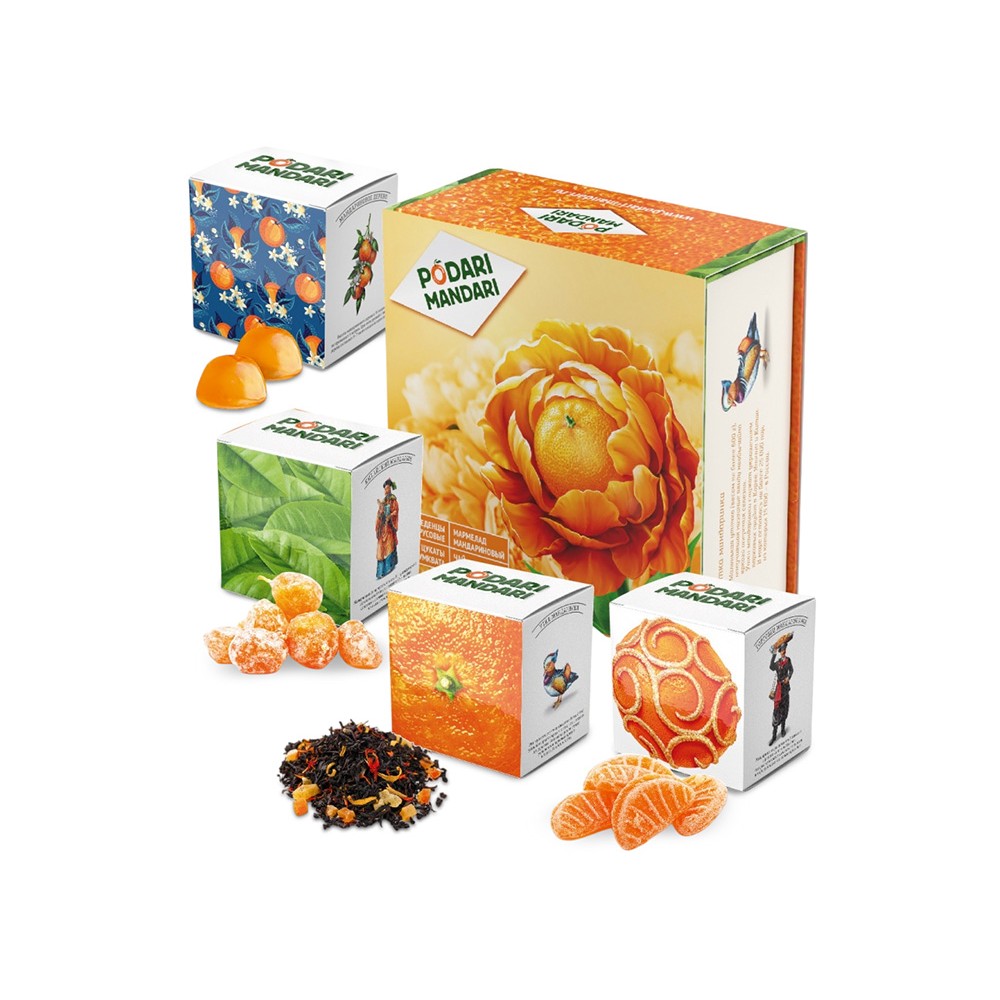 Набор представляет собой метафору мандарина – одного из главных символов Нового года.