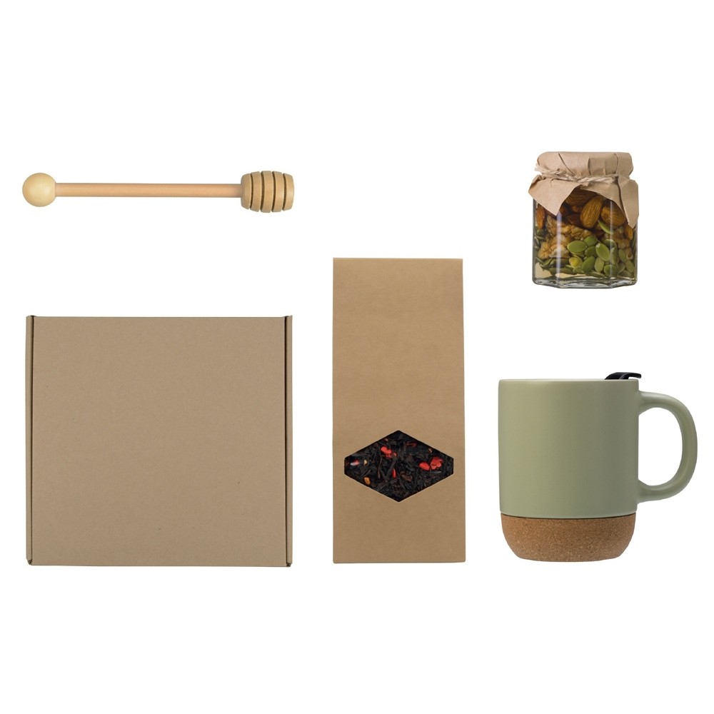 Подарочный набор с кружкой, медом и ложкой для меда, оливковый