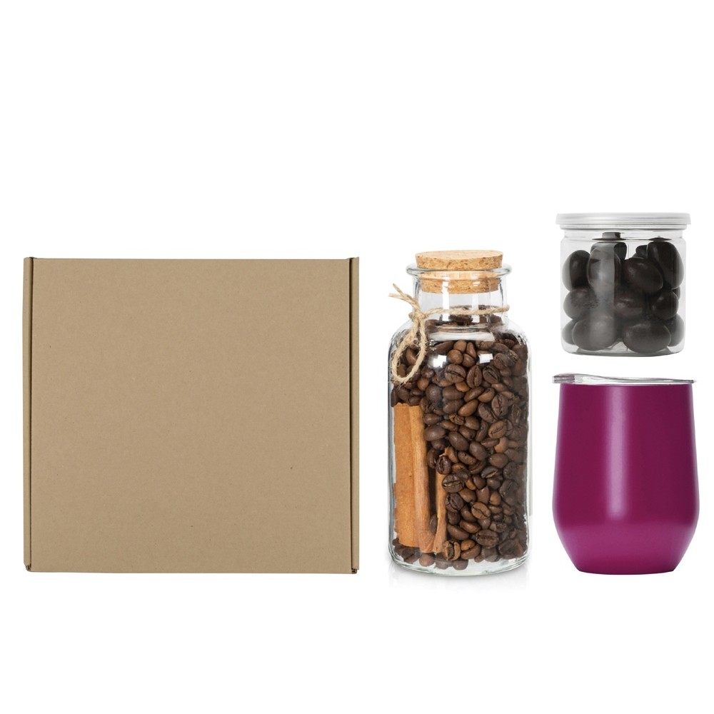 • Подарочный набор с термокружкой, кофе и миндалем в шоколаде, винный