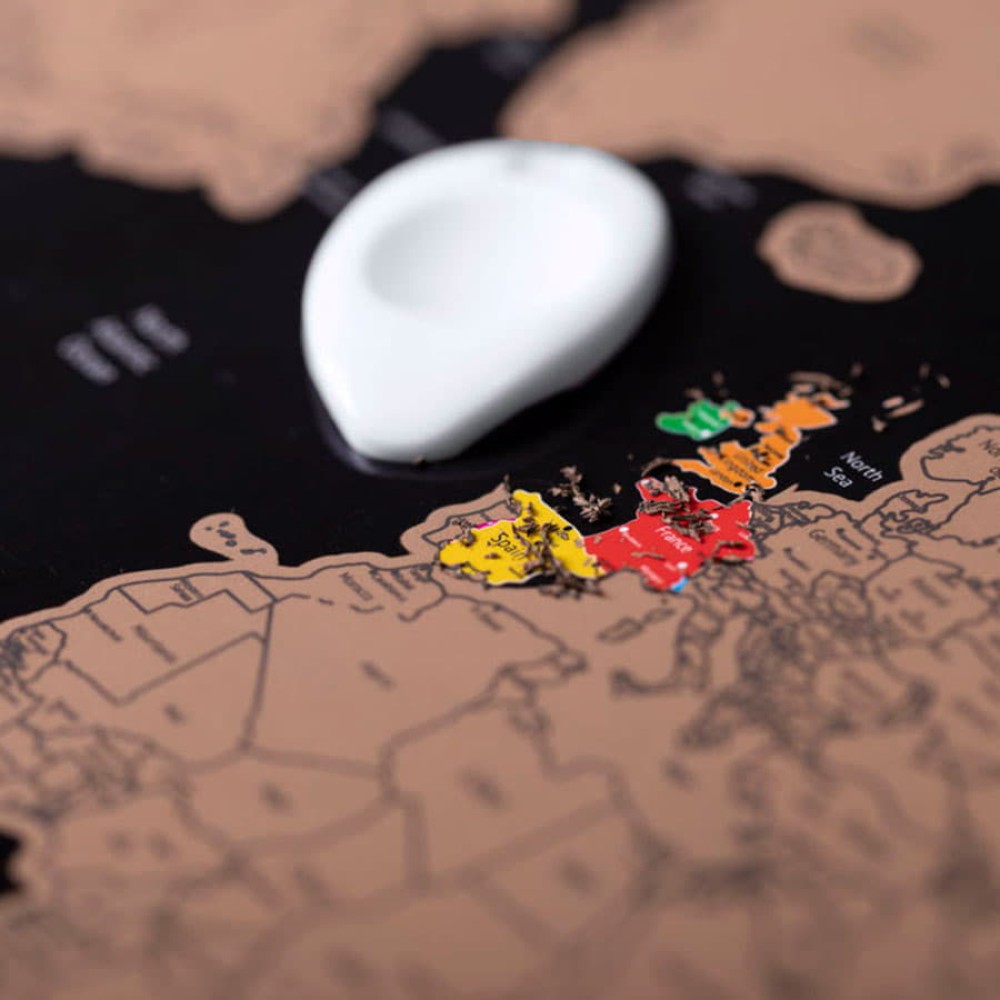 Скретч-карта мира станет прекрасным подарком для всех любителей путешествовать, а также для компаний, чья деятельность простирается далеко за пределы одной страны.Специальное покрытие позволяет легко отмечать страны по мере их посещения: достаточно стереть защитный слой, под которым обнаружится разноцветная карта.