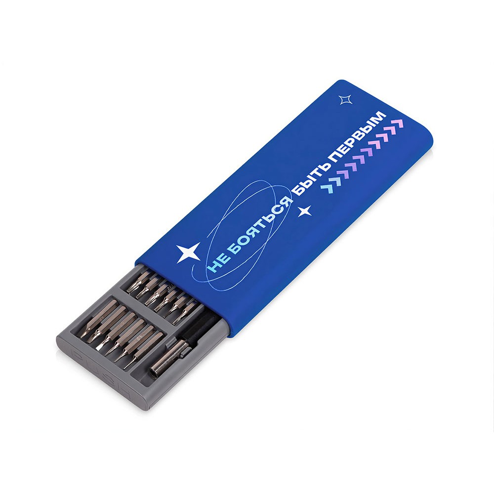 Отвертка с набором из 24 насадок Bits, темно-синий (уф печать)