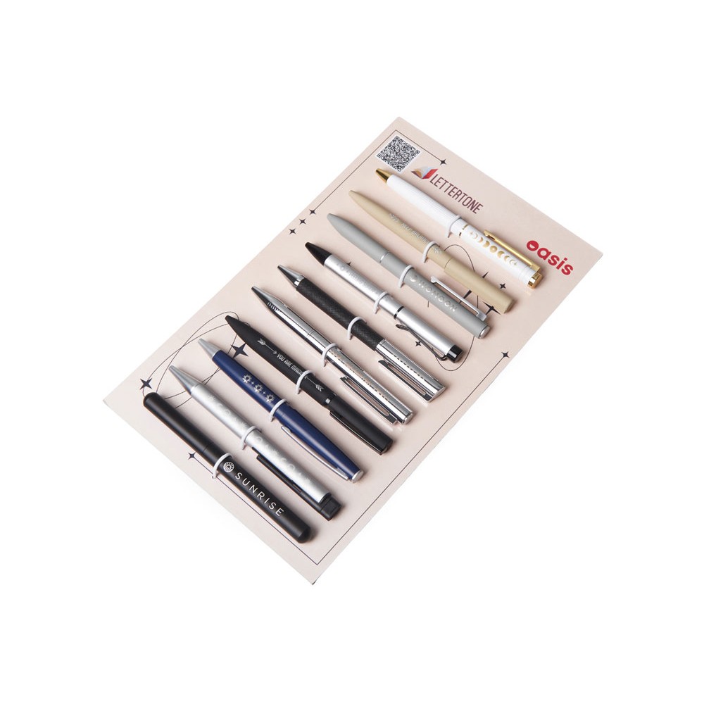 Промо-набор — идеальный инструмент для презентаций: клиенты могут подержать ручки в руках, опробовать их в деле и наглядно увидеть различия между вид
