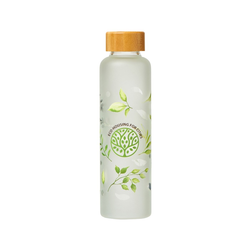 Стеклянная бутылка с бамбуковой крышкой Foggy, 600мл, с УФ-печатью, белый, листья