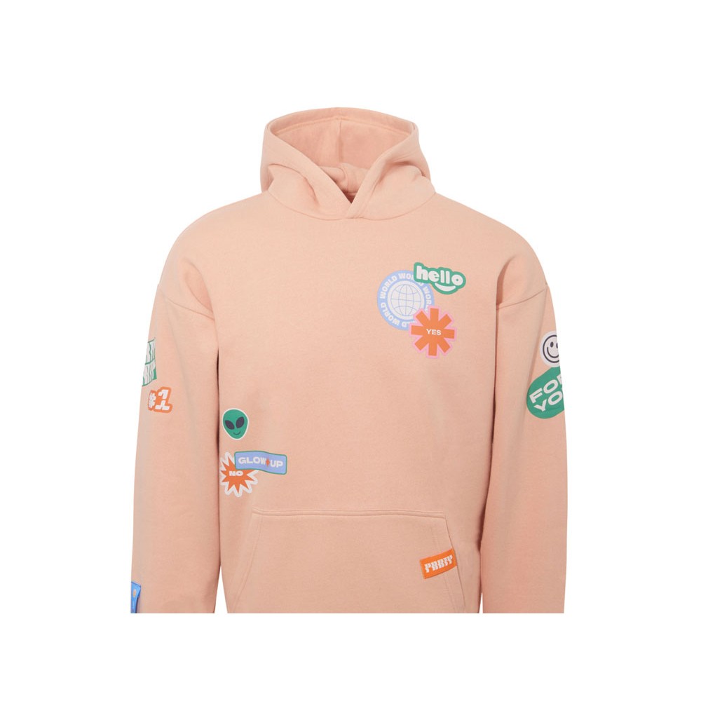 Толстовка с капюшоном оверсайз Berlin унисекс, лососевый, ДТФ, бренд тайп и лейбл