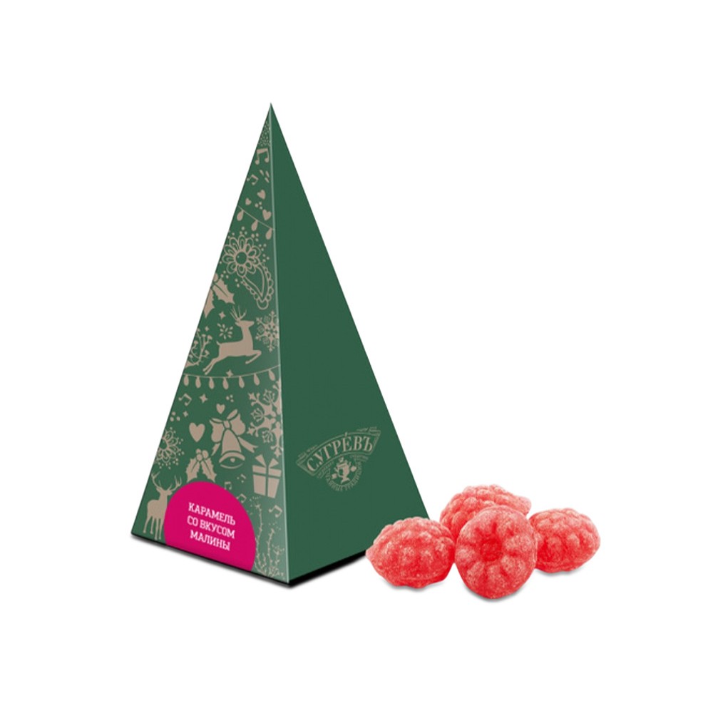 Картонная ёлка с наполнением из леденцов со вкусом малины — это отличный бюджетный вариант дополнения новогоднего подарка!