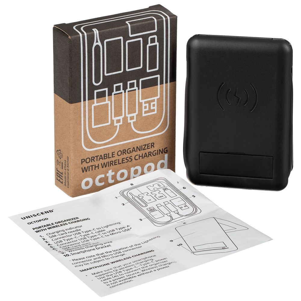 • Органайзер с беспроводной зарядкой и набором адаптеров Octopod, черный